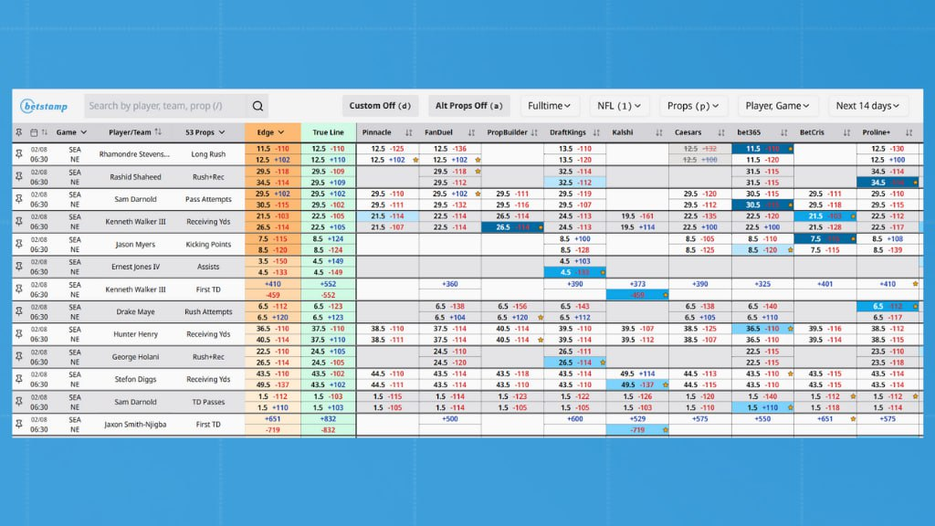 What makes this Super Bowl week different is the scale. With hundreds of props, alternate lines, and novelty markets, it becomes impossible to track this manually. That’s why the real edge is not “having a take” — it’s seeing the entire market at once, knowing which books move first, and spotting where prices are still stale.